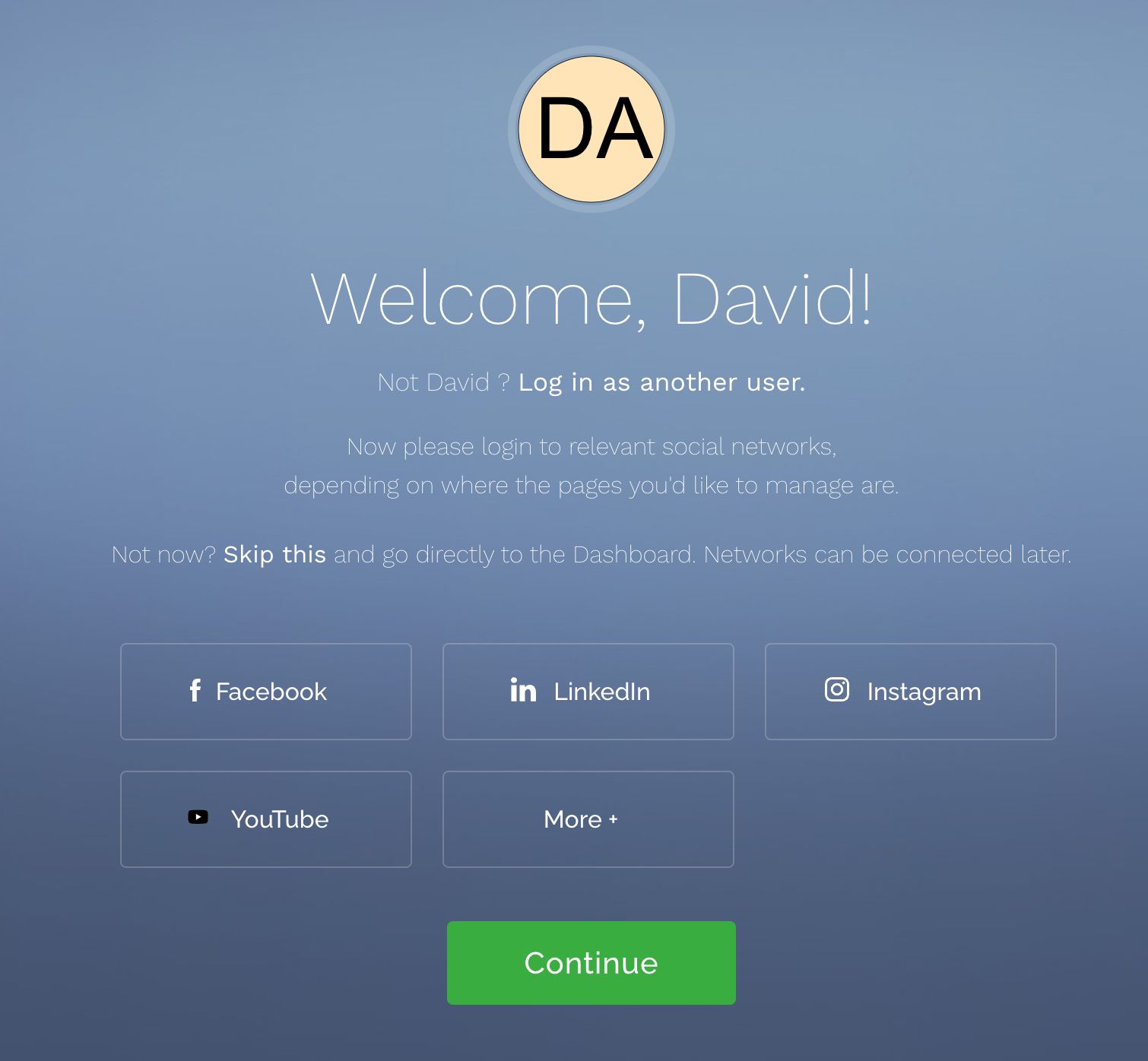 Register a new account if you don't have any. An onboarding interface will be shown. Connect social profiles that you are going to manage with the API. Once finished, you will have a Jollor user, an agency and a project with connected social profiles.